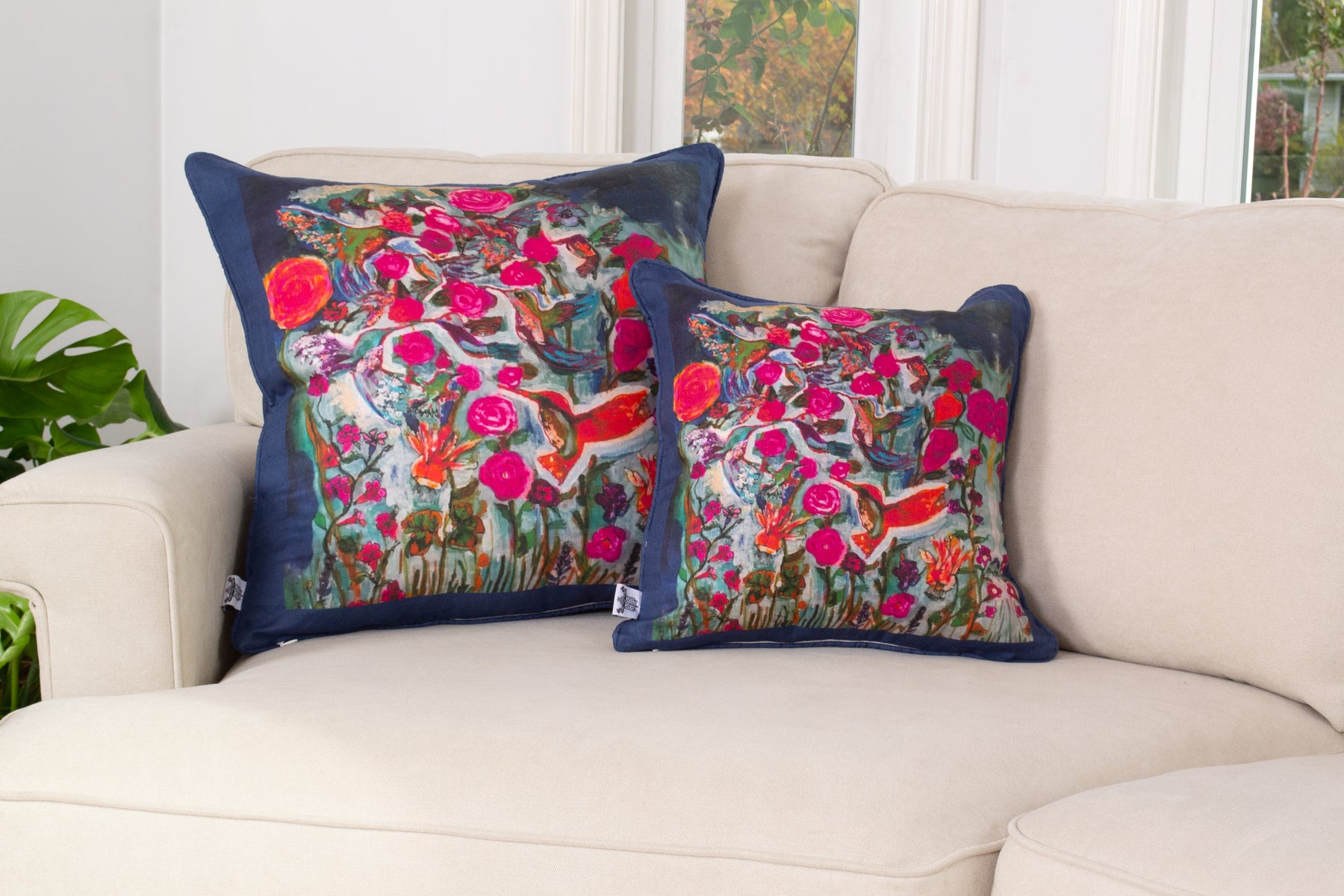 D-112B LOVE'S EYE IS ON THE SPARROW - HUMMINGBIRD - Small Luxury Organic Linen Sham, 16" x 16"
