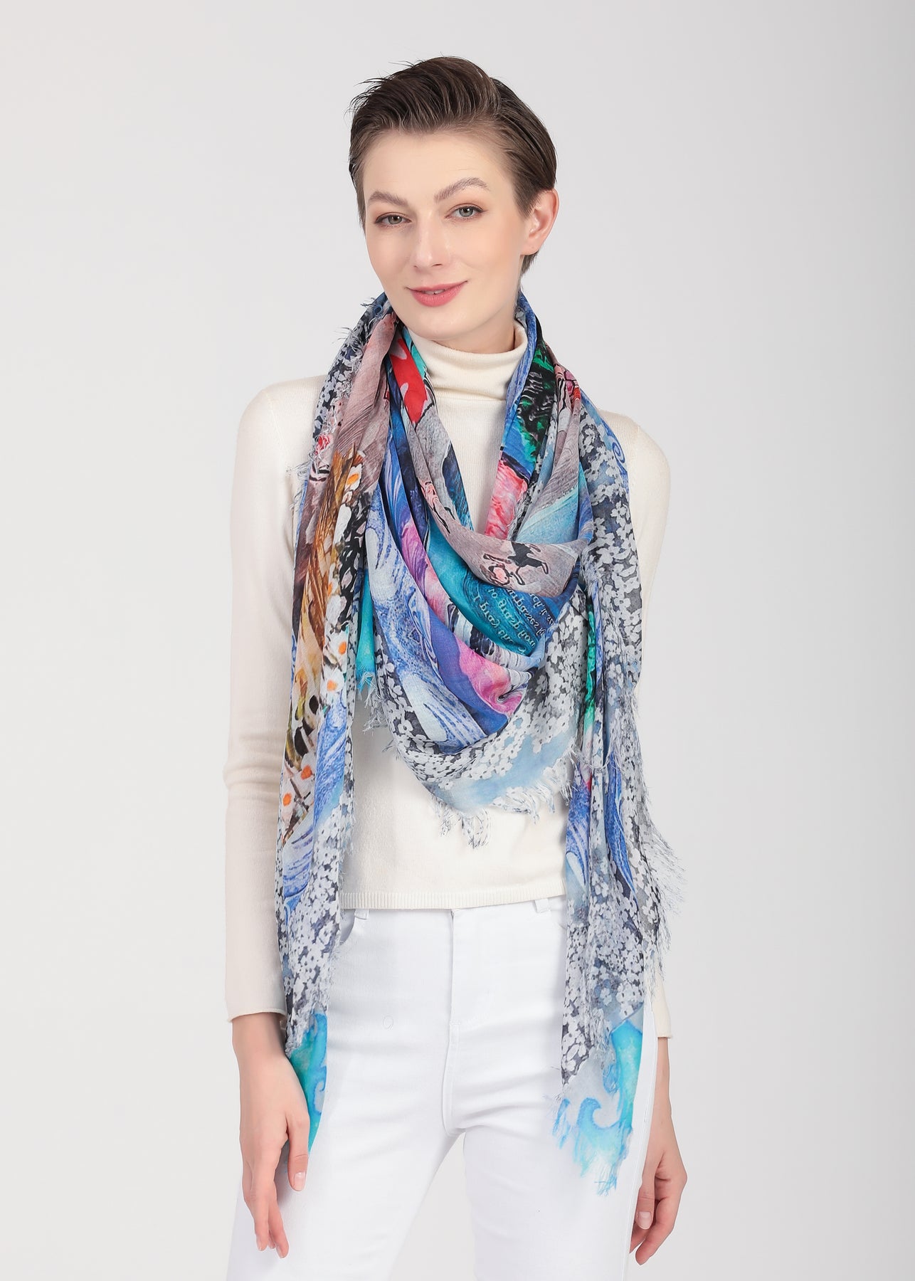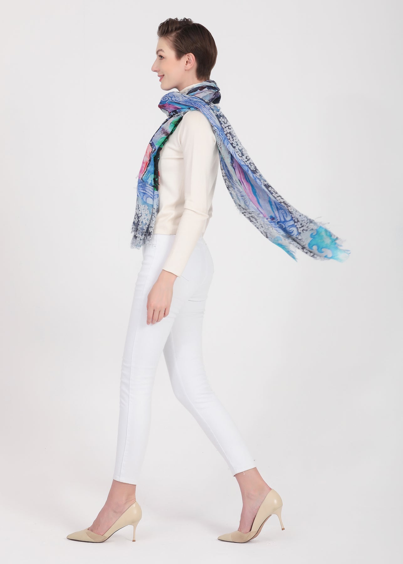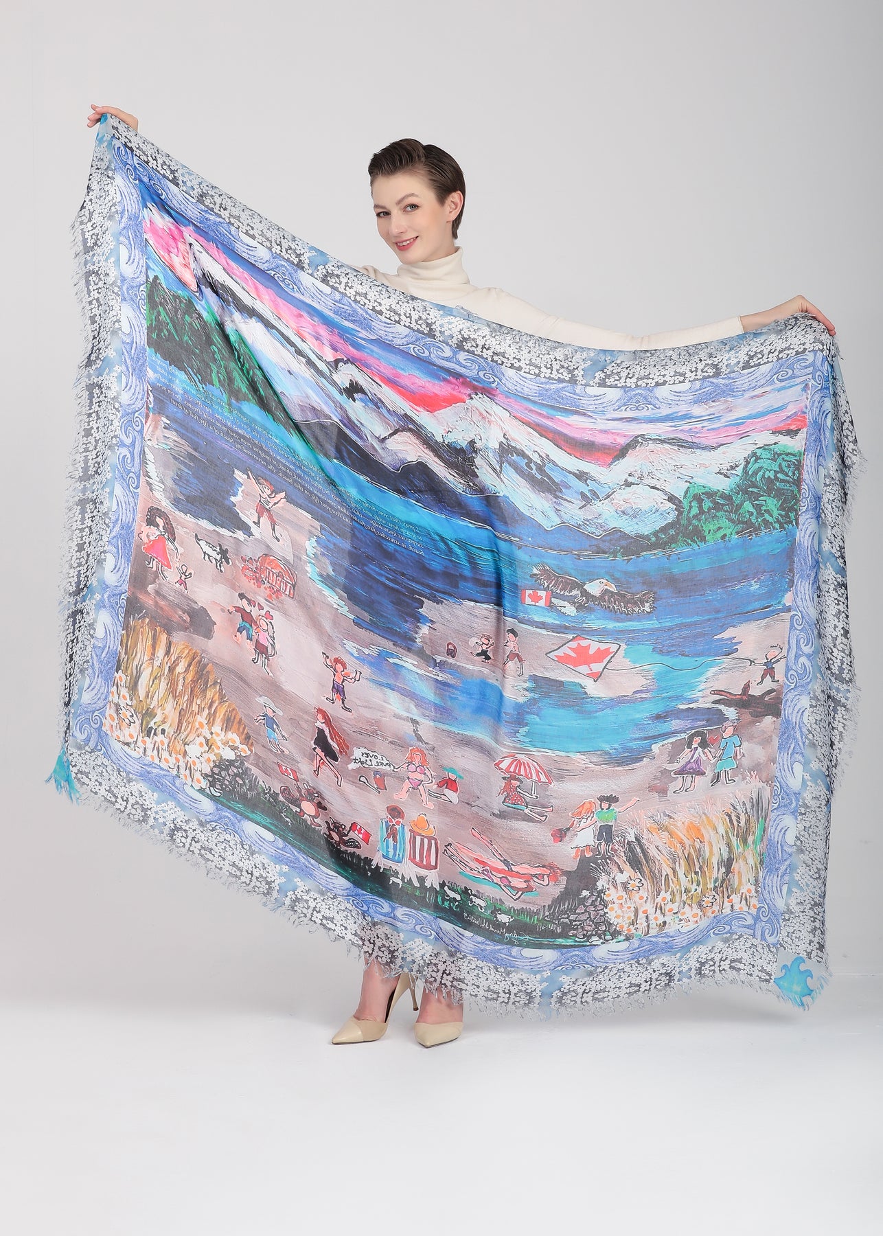 The scarf has a bold intricate border of Provincial flower of British Columbia, BC Dogwood flower. It is a lovely collectors scarf for anyone who loves the beach! Oh life is a never-ending beach!