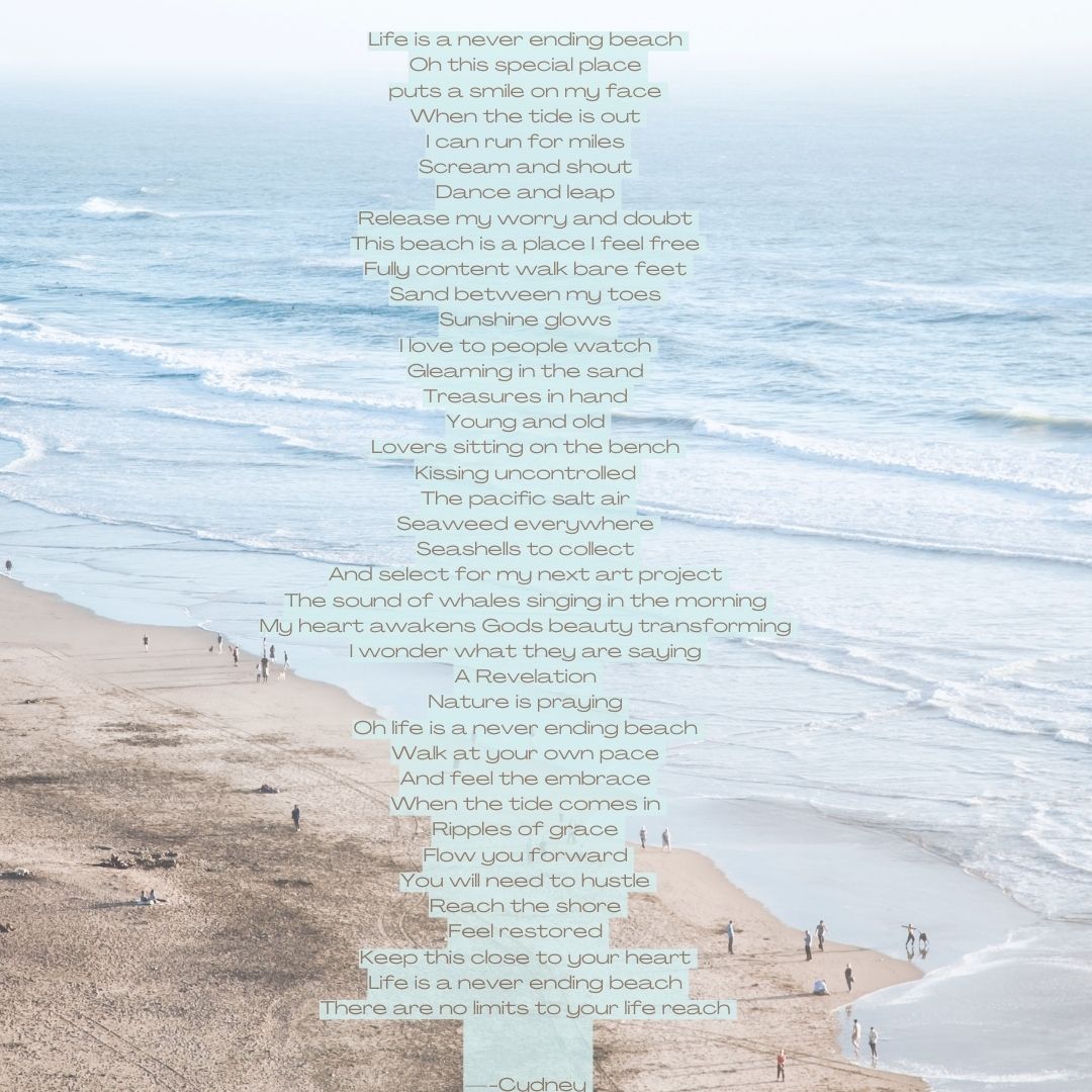 I pray that you, being rooted and established in love, may have power together with all the beach worshippers, to grasp how wide, how long, how far and deep is the love of God and to know this love that surpasses knowledge-- that you may be filled to the measure of all the fullness of God. For life is a never-ending beach. It stretches far- far beyond you could think, ask or imagine. Even further than your wildest dreams! Go on now! Live your life on this beach! The never-ending beach of a life full of love!