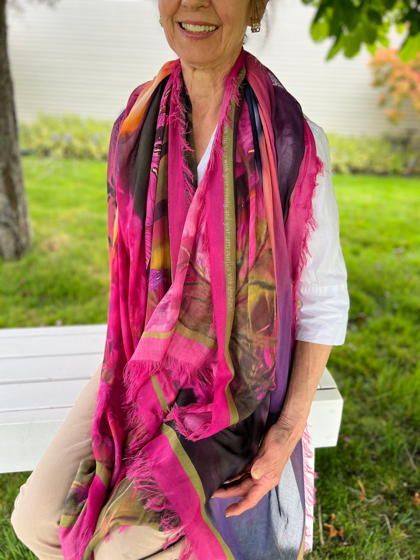 • Each scarf comes with a handmade luxury silk collectable pouch to store your scarf and promise card in a keepsake place (when you are not wearing it)
