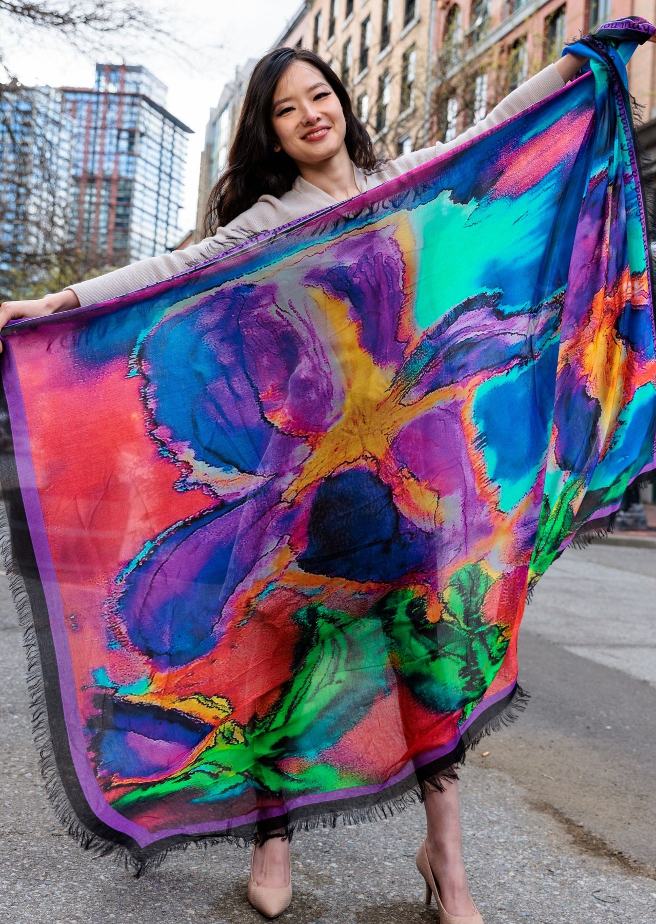 • Mammoth in size; may be styled in numerous ways or worn as a love wrap