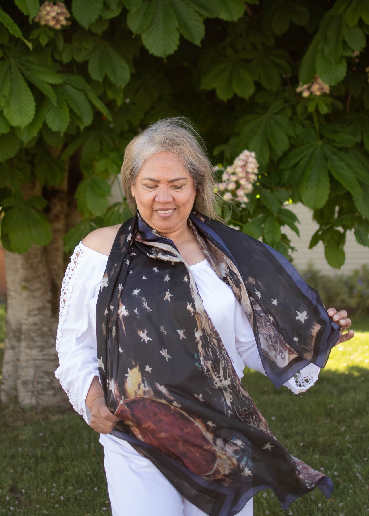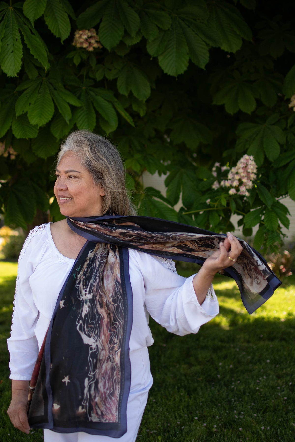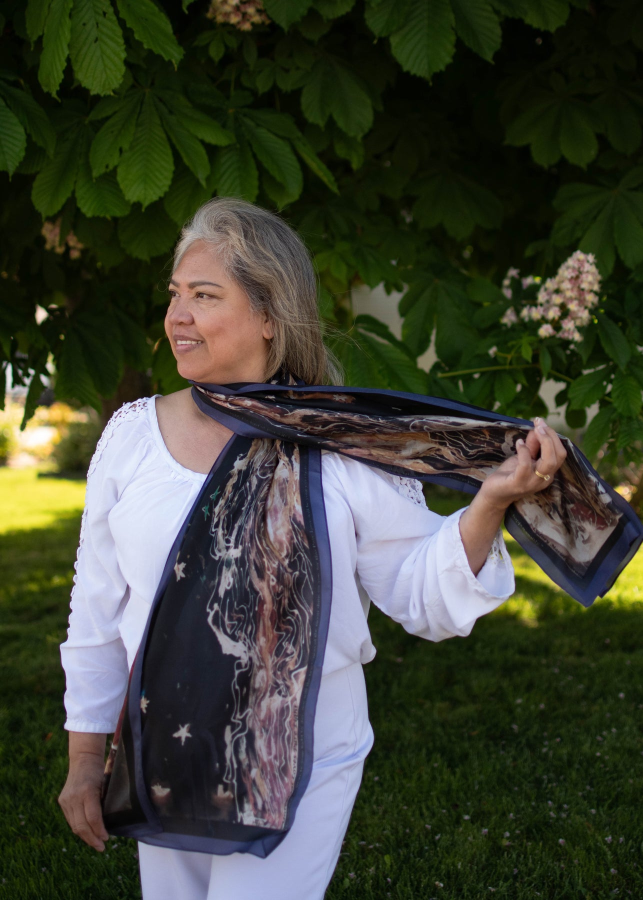 • A versitile scarf to be worn many ways! See tutorial page how to SCRUNCH it and give the scarf a whole new effect.