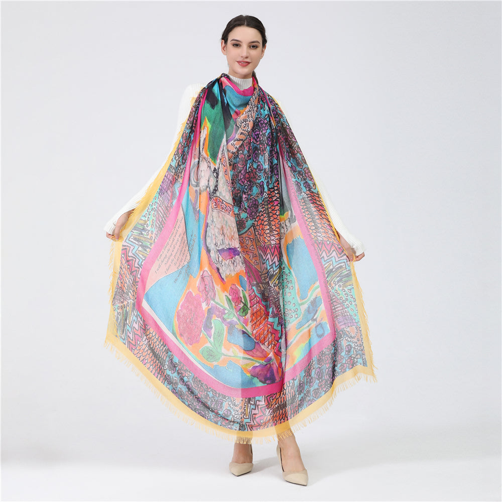 Luxury hand painted forever silk shawl: