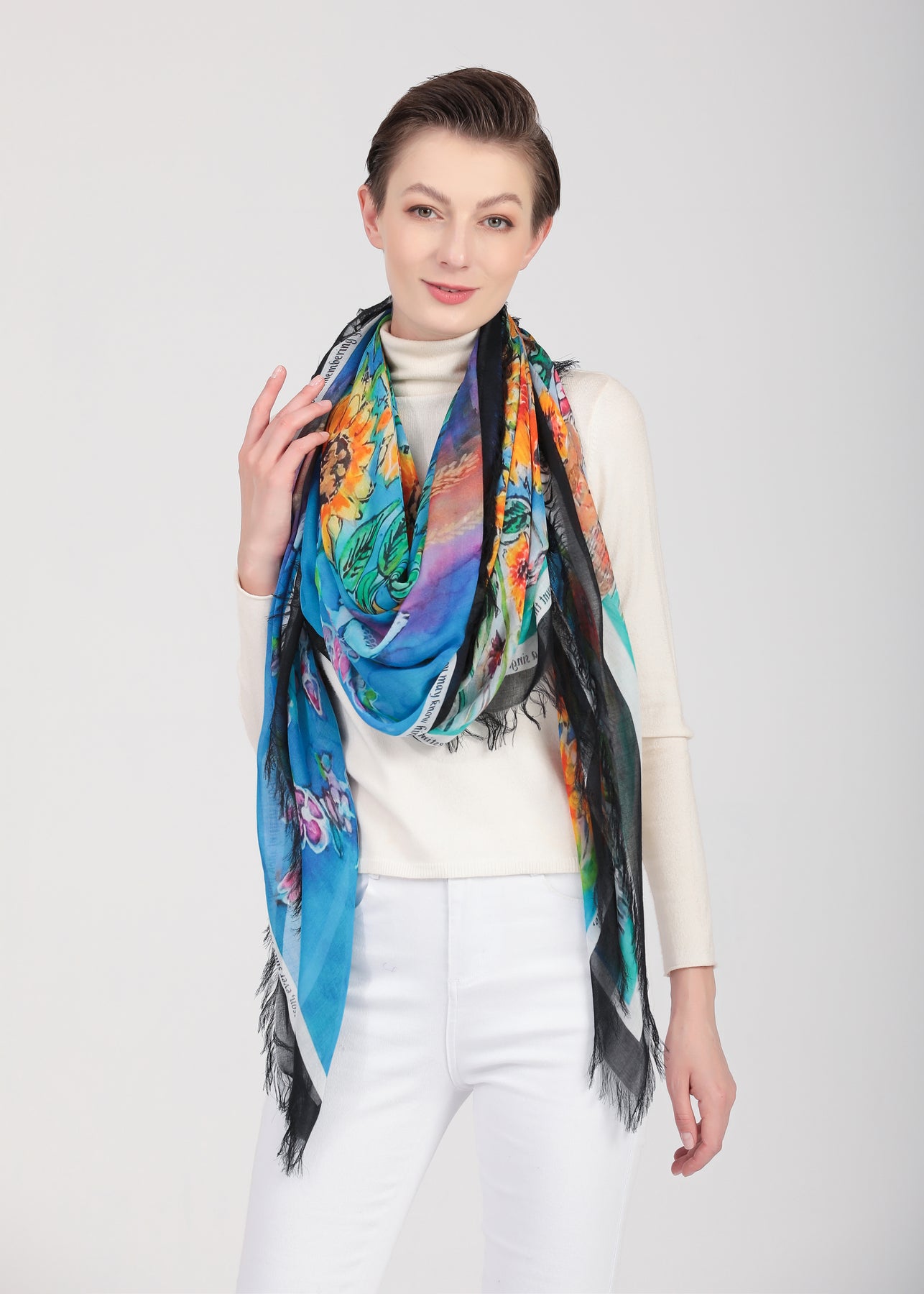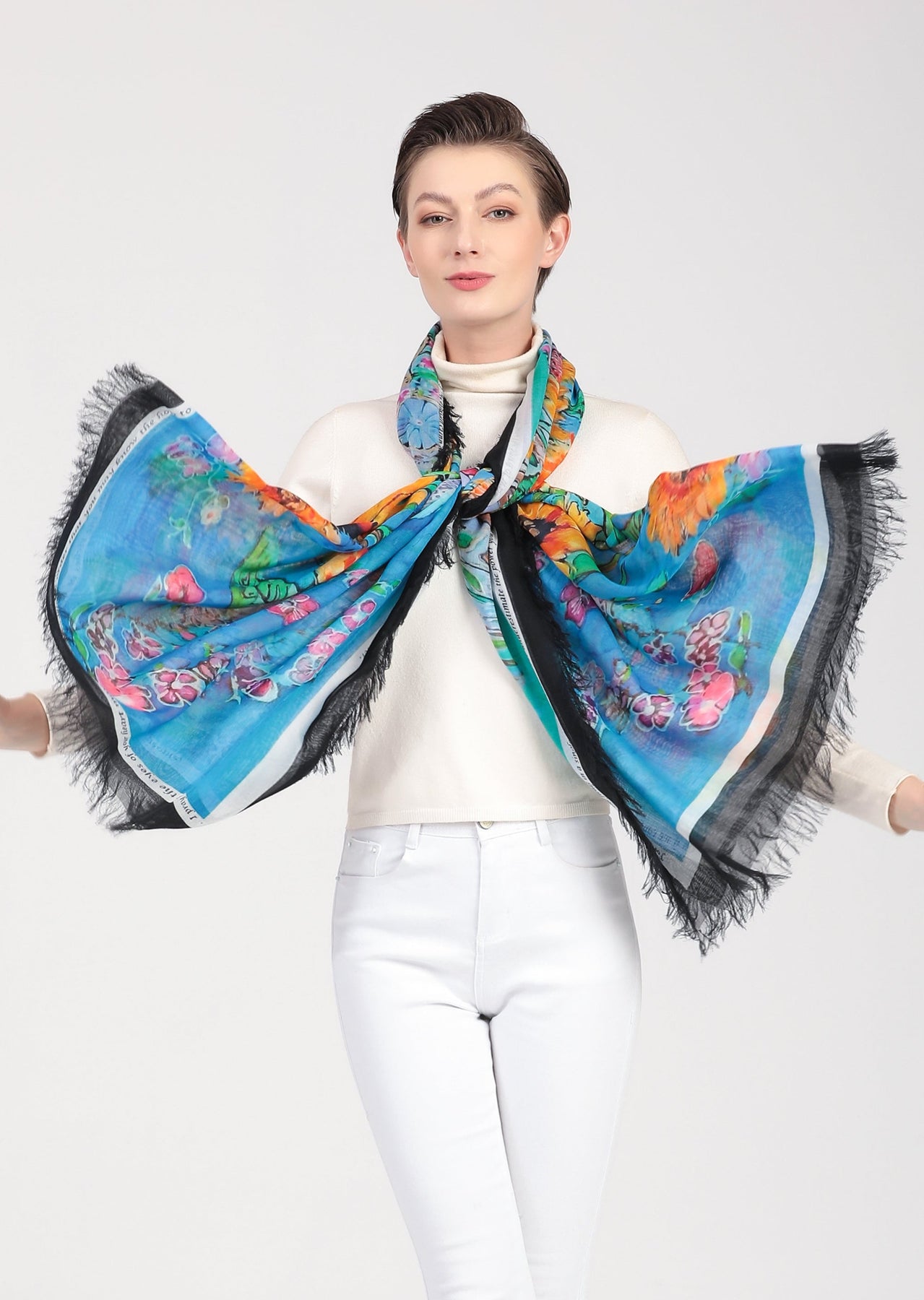 Luxury hand painted forever silk shawl.